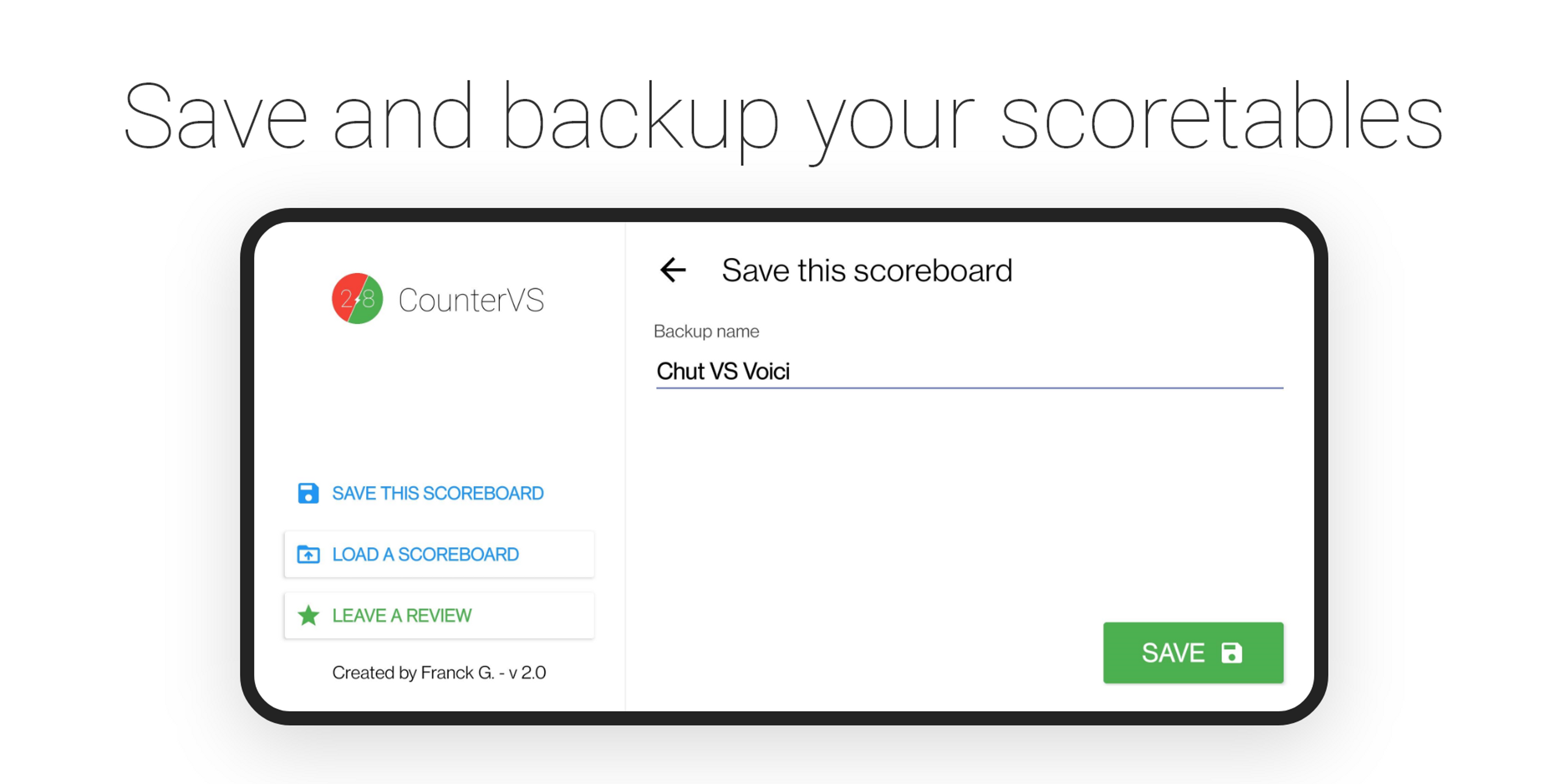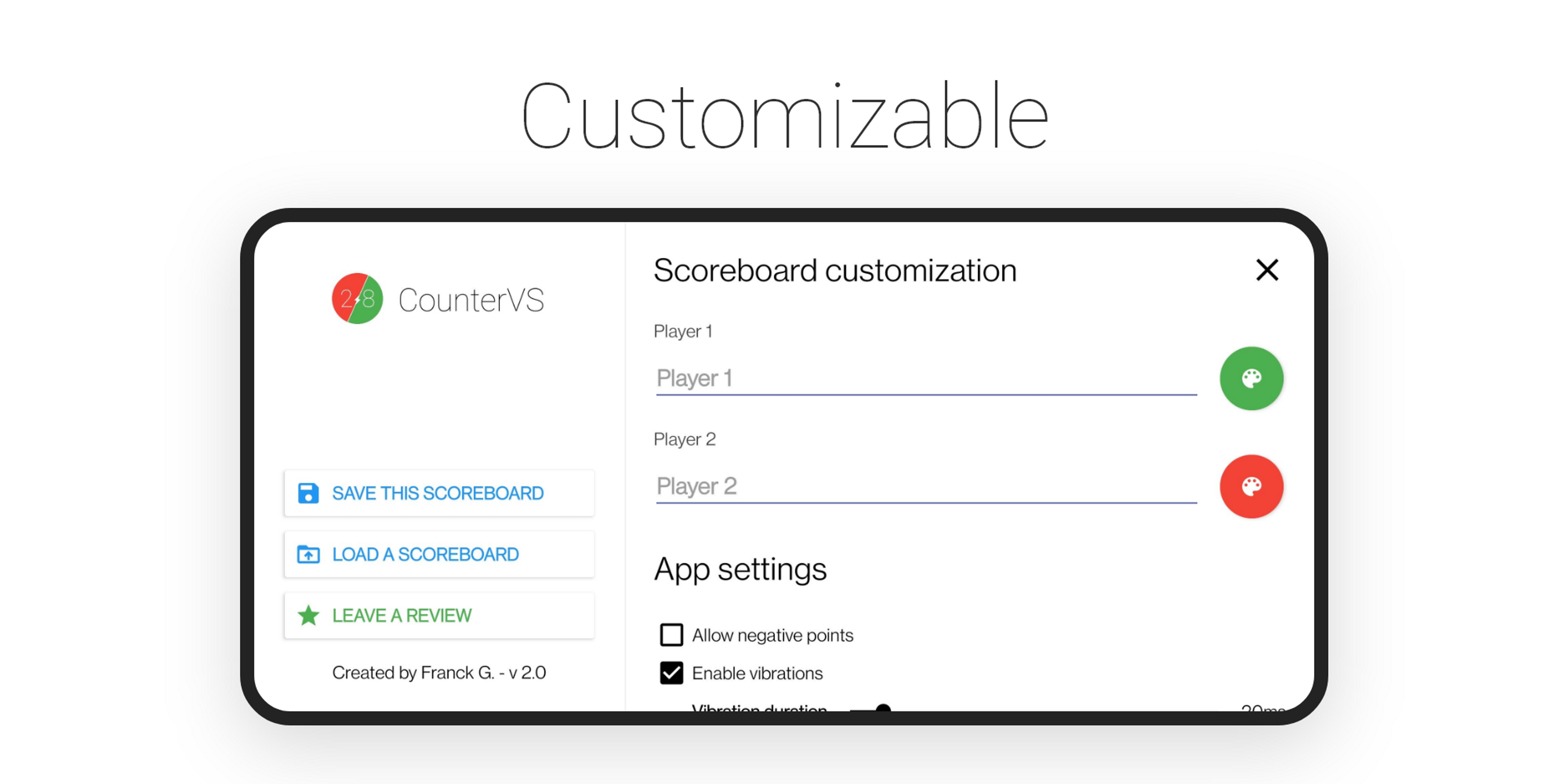 A complete, user-friendly and customizable application for keeping score between two players. +170K downloads on Play Store.