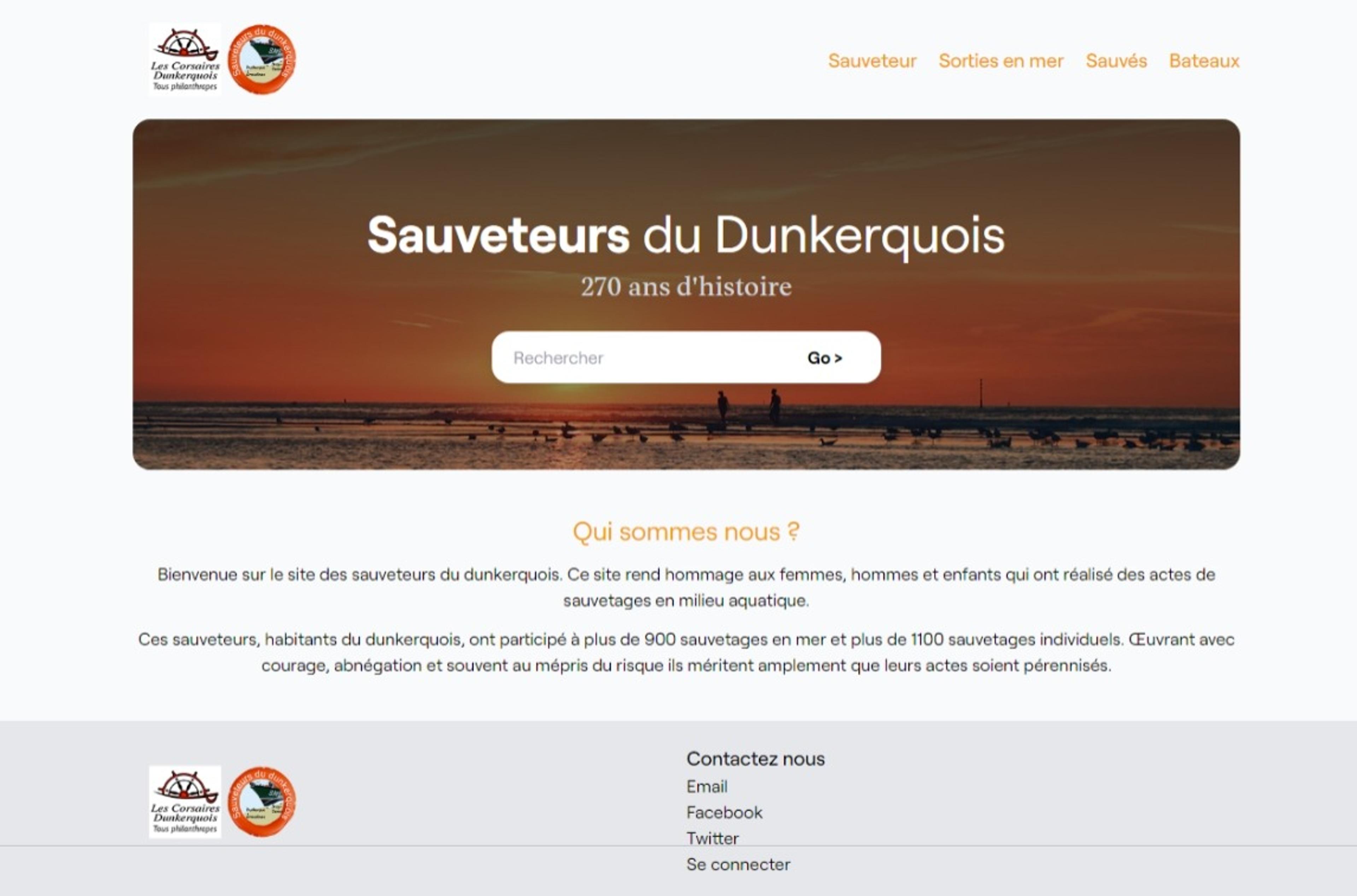 Site listing lifeguards, sea outings, boats and people rescued by Dunkirk lifeguards.